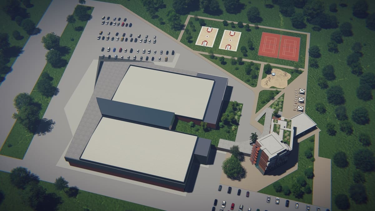 This concept design proposes a comprehensive sports complex and hotel in Riga, specifically tailored to serve as a high-quality training base for hockey players. The core of the facility is the modern Ice Arena, complemented by additional sports infrastructure and an integrated hotel to house athletes and staff.
